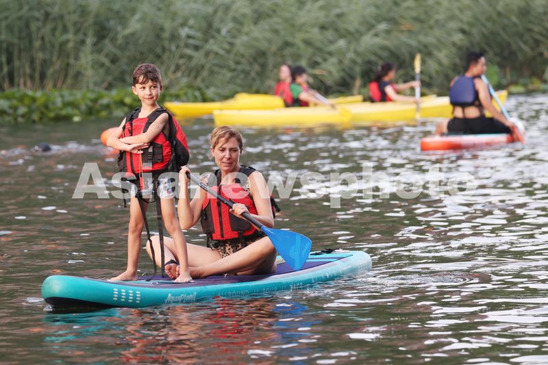 2024年7月20日,高温来袭,不少桨板和皮划艇爱好者在北京亮马河水面上划行,享受运动快乐,觅夏日清凉。