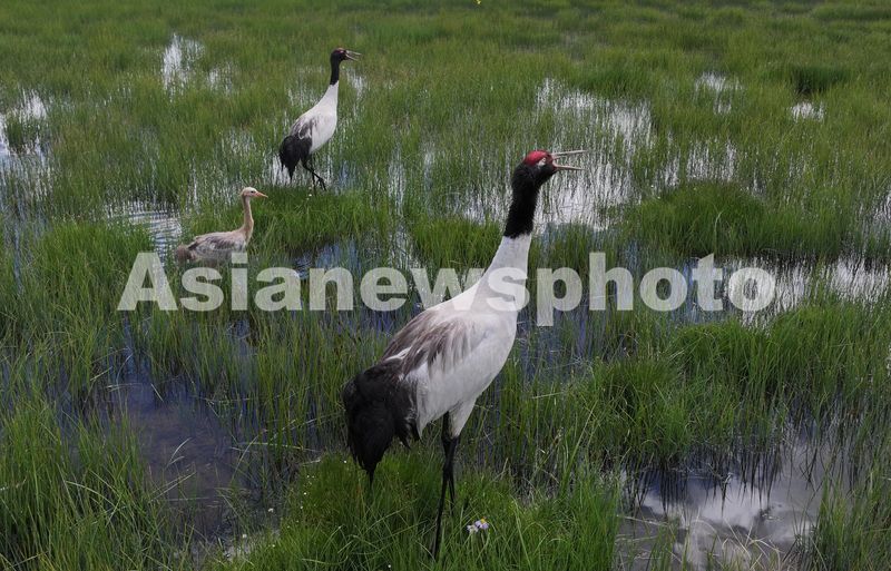 7月30日,青海隆宝滩国际重要湿地内的黑颈鹤。