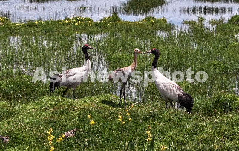 7月30日,青海隆宝滩国际重要湿地内的黑颈鹤。