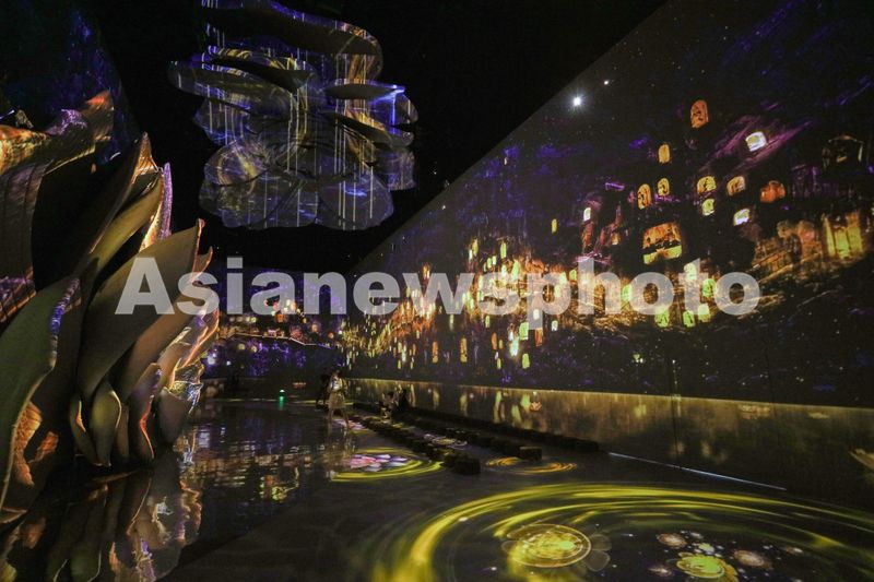 2024年8月6日,观众在中国国家博物馆观看“华彩万象——石窟艺术沉浸体验”展。本次沉浸体验展陈空间约1500平米,艺术家结合数字绘制、数字影像和AI算法技术,以当代眼光和独特视角来表现、挖掘和阐释克孜尔石窟、敦煌莫高窟、麦积山石窟、云冈石窟和龙门石窟的艺术风格与丰富内涵。