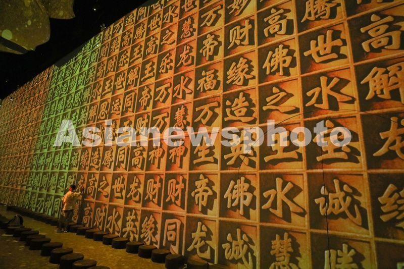 2024年8月6日,观众在中国国家博物馆观看“华彩万象——石窟艺术沉浸体验”展。本次沉浸体验展陈空间约1500平米,艺术家结合数字绘制、数字影像和AI算法技术,以当代眼光和独特视角来表现、挖掘和阐释克孜尔石窟、敦煌莫高窟、麦积山石窟、云冈石窟和龙门石窟的艺术风格与丰富内涵。