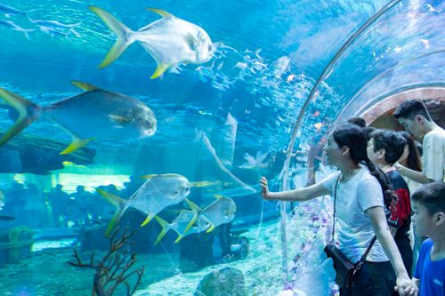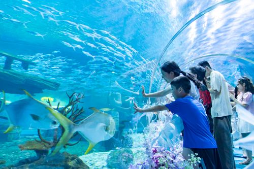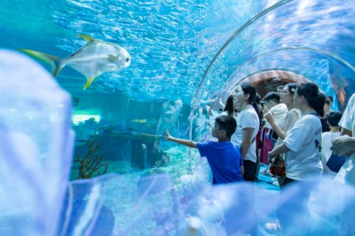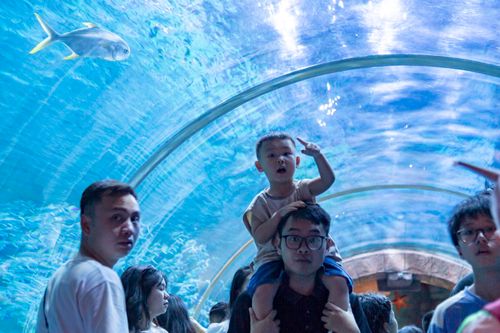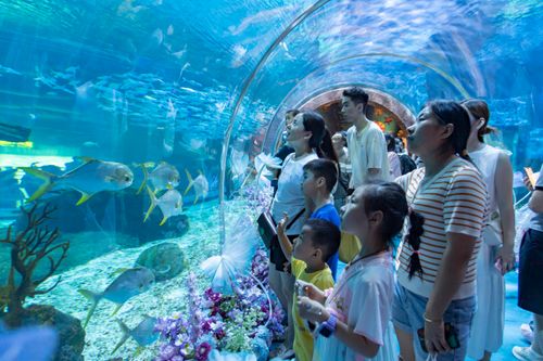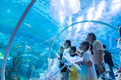 2024年8月10日,重庆市沙坪坝区重庆融创海世界,游客在参观游玩。入夏以来,不少游客选择走进海洋馆,与海洋生物亲密接触,了解海洋知识,放松心情,享受夏日清凉之旅。