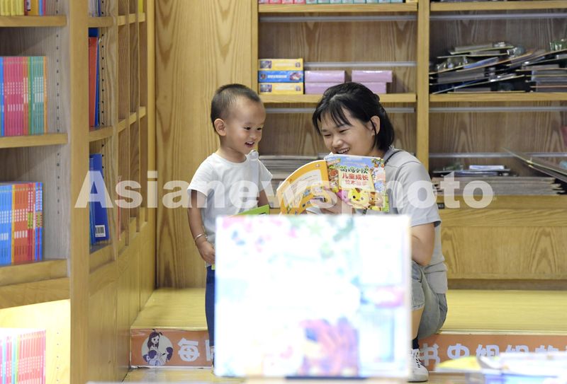 2024年8月12日,天气炎热,在安徽省合肥市一处新华书店,小朋友和家长共享快乐阅读美好时光。