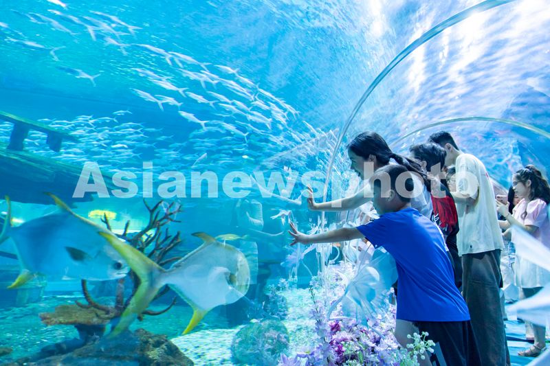 2024年8月10日,重庆市沙坪坝区重庆融创海世界,游客在参观游玩。入夏以来,不少游客选择走进海洋馆,与海洋生物亲密接触,了解海洋知识,放松心情,享受夏日清凉之旅。
