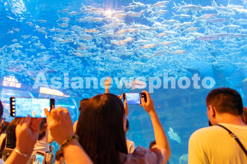 2024年8月10日,重庆市沙坪坝区重庆融创海世界,游客在参观游玩。入夏以来,不少游客选择走进海洋馆,与海洋生物亲密接触,了解海洋知识,放松心情,享受夏日清凉之旅。