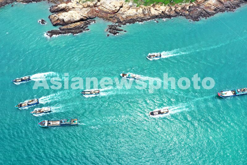 2024年8月16日,位于福建省福州市连江县苔菉国家中心渔港,众多渔船扬帆启航。