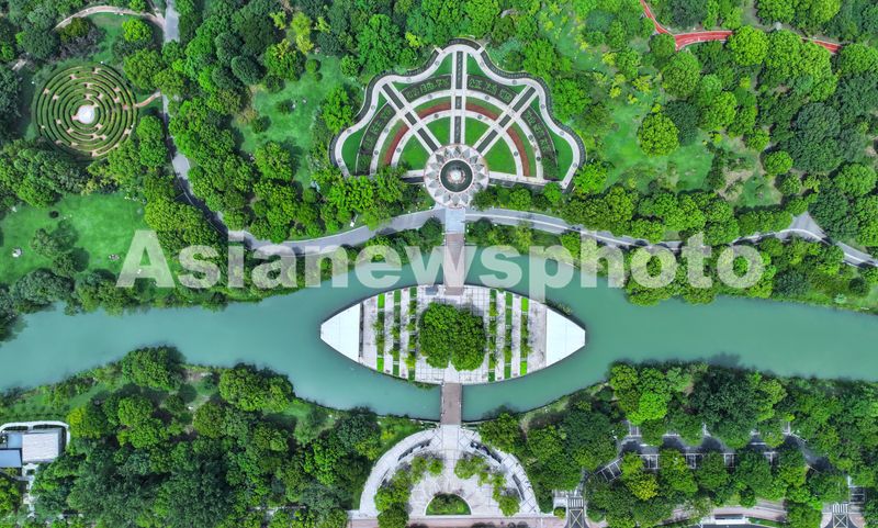 图片说明:2024年8月15日是第二个全国生态日,俯瞰江苏省张家港市梁丰生态园,绿草如茵,树木繁茂。