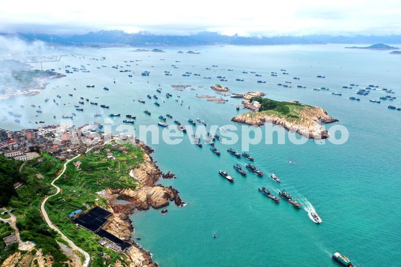 2024年8月16日,位于福建省福州市连江县苔菉国家中心渔港,众多渔船扬帆启航。