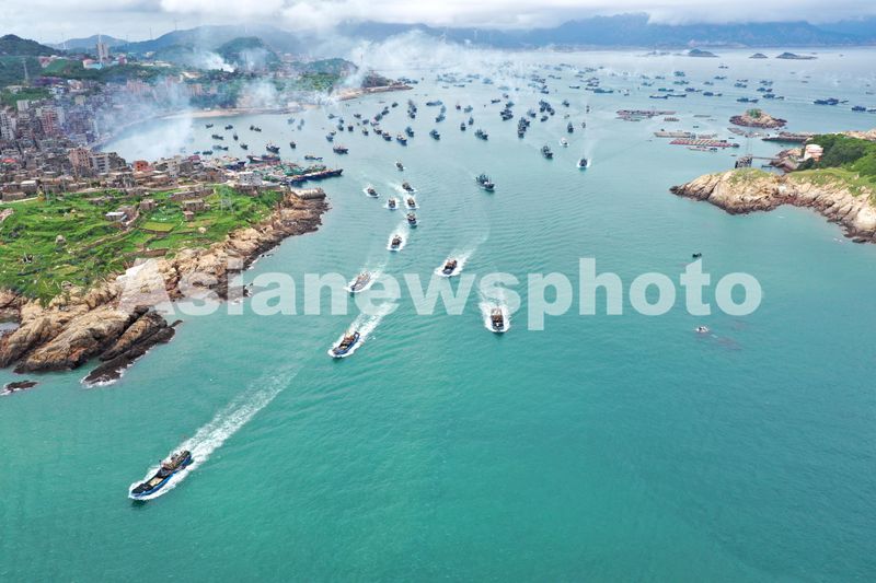 2024年8月16日,位于福建省福州市连江县苔菉国家中心渔港,众多渔船扬帆启航。
