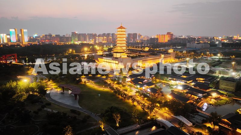 2024年8月17日,扬州中国大运河博物馆夜景璀璨。 夏日夜晚,位于江苏省扬州市广陵区三湾湿地的扬州中国大运河博物馆流光溢彩、灯光璀璨,与大运河交相辉映,一幅秀美的大运河夜景画面。