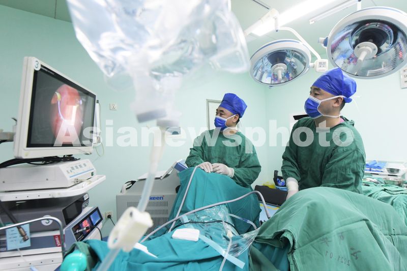 2024年8月19日,在河北省石家庄新乐市中医医院手术室,医生在为患者做手术。当日是第七个中国医师节,各地医师坚守岗位,在工作中迎接自己的节日。今年中国医师节的主题是“崇尚人文精神,彰显医者仁心”。