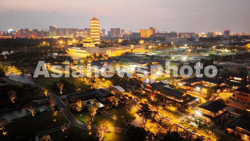 2024年8月17日,扬州中国大运河博物馆夜景璀璨。 夏日夜晚,位于江苏省扬州市广陵区三湾湿地的扬州中国大运河博物馆流光溢彩、灯光璀璨,与大运河交相辉映,一幅秀美的大运河夜景画面。