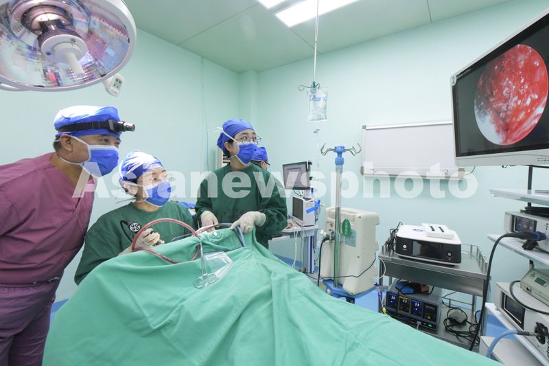 2024年8月19日,在河北省石家庄新乐市中医医院手术室,医生在为患者做手术。当日是第七个中国医师节,各地医师坚守岗位,在工作中迎接自己的节日。今年中国医师节的主题是“崇尚人文精神,彰显医者仁心”。