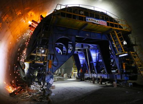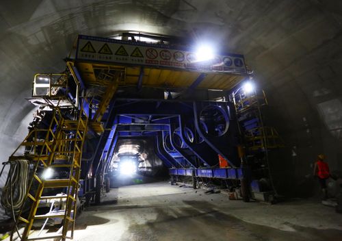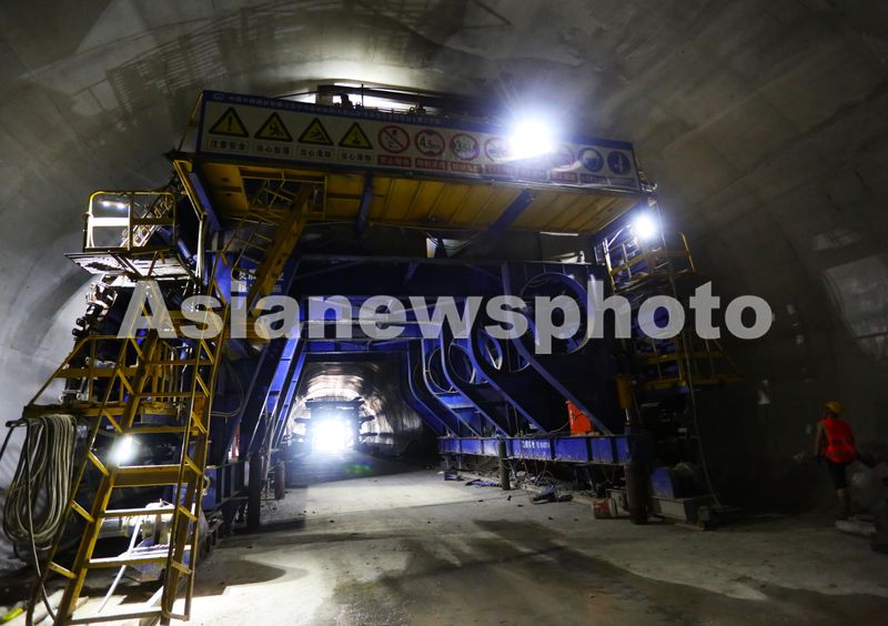 2024年8月17日,安徽省马鞍山市当涂县姑孰镇宁马城际铁路(马鞍山段)白纻山隧道项目施工现场,中铁八局建设者们正在加紧施工全力推进。