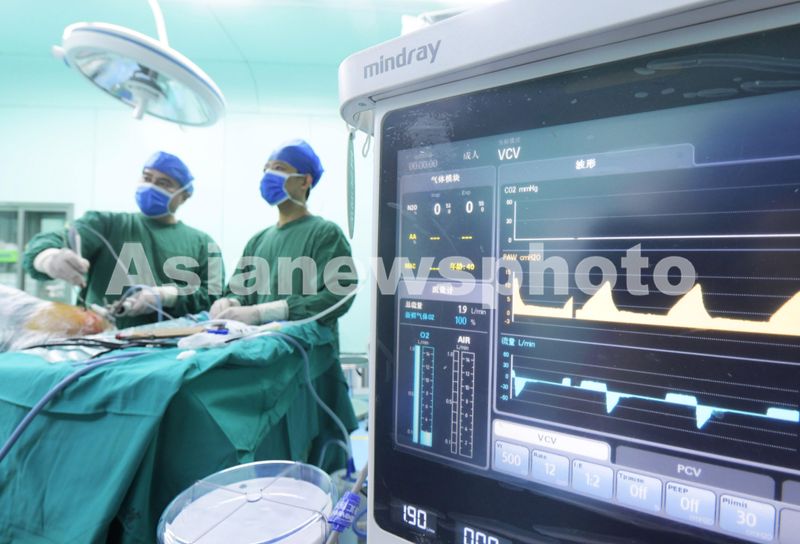 2024年8月19日,在河北省石家庄新乐市中医医院手术室,医生在为患者做手术。当日是第七个中国医师节,各地医师坚守岗位,在工作中迎接自己的节日。今年中国医师节的主题是“崇尚人文精神,彰显医者仁心”。