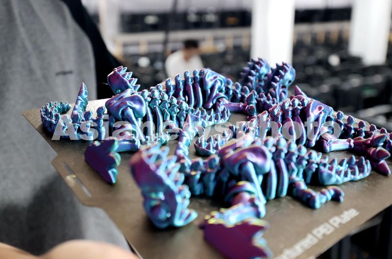 图片说明:2024年8月21日,浙江省湖州市德清县下渚湖街道上杨村一家3D打印工厂生产车间,工人在检测3D玩具产品。