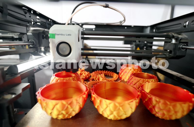 图片说明:2024年8月21日,浙江省湖州市德清县下渚湖街道上杨村一家3D打印工厂,3D打印机在赶制定单玩具。