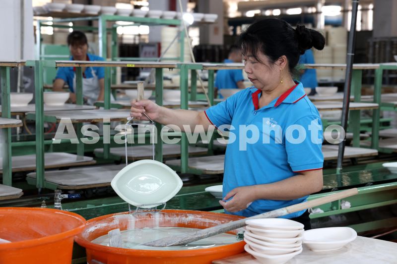 2024年8月26日,工人在陆升(德化)陶瓷有限公司生产车间生产陶瓷产品。