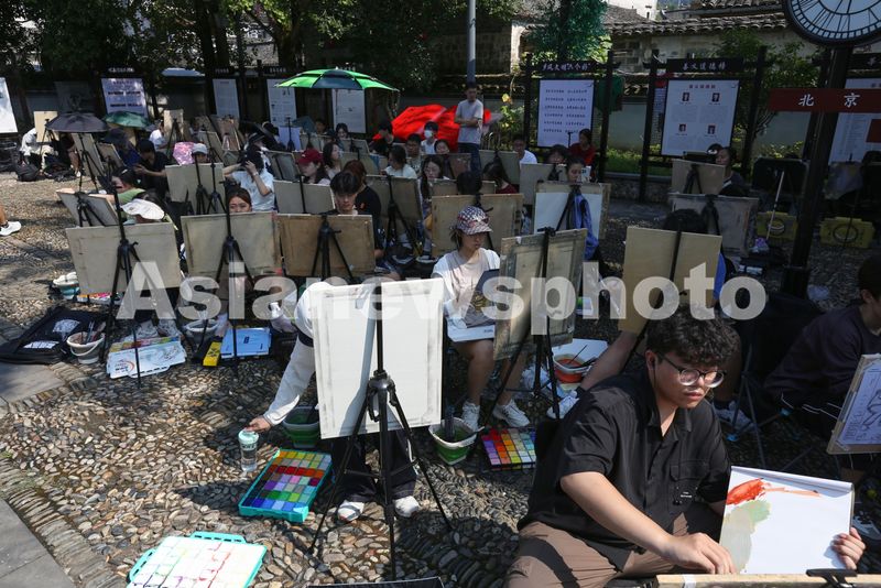 8月26日,美术生在安徽省黄山市黟县西递古村落写生创作。