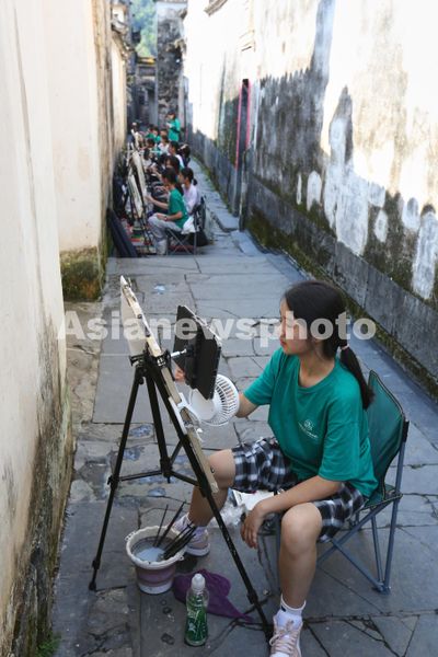 8月26日,美术生在安徽省黄山市黟县西递古村落写生创作。