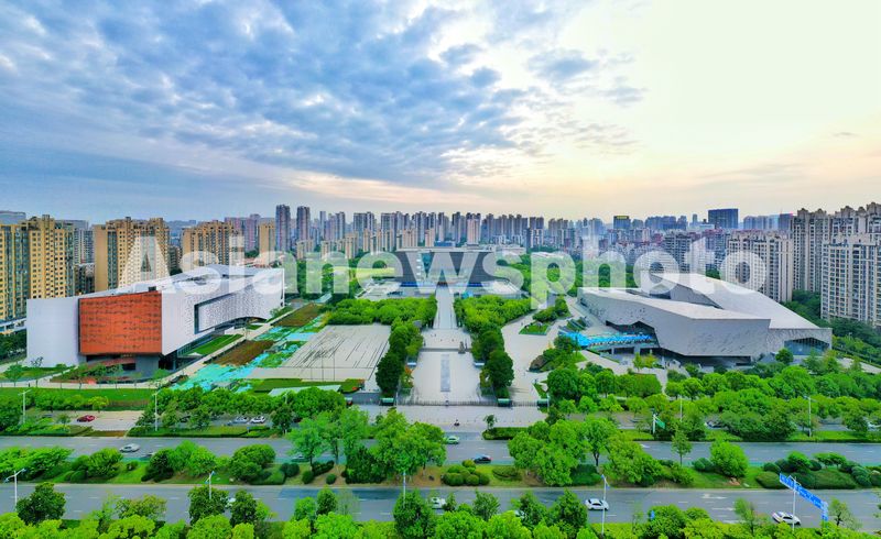 图片说明:2024年8月28日,航拍的安徽省合肥美术馆主体工程(左侧建筑物)已经建成,与安徽博物院蜀山馆(中间建筑物)、安徽省地质博物馆(右侧建筑物)一同形成中轴对称布局。