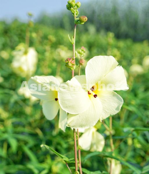 2024年9月4日,在江苏省海安市墩头镇千步村季家家庭农场黄蜀葵种植基地,淡黄色的黄蜀葵花娇艳美丽。