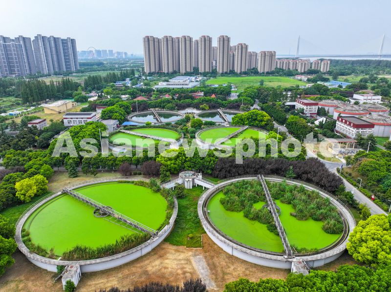 图片说明:2024年9月4日,俯瞰江苏省南京市江心洲污水处理厂。