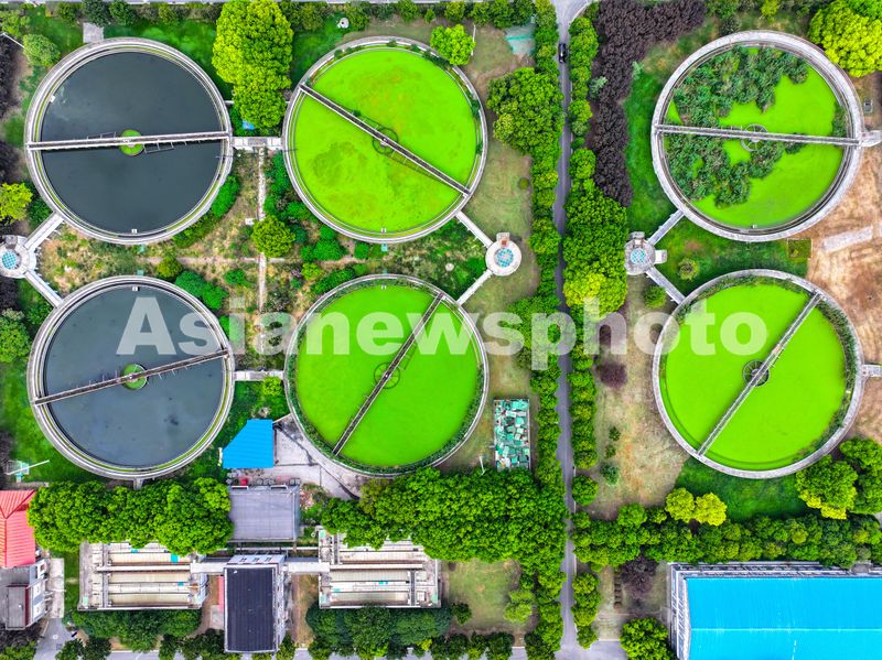 图片说明:2024年9月4日,俯瞰江苏省南京市江心洲污水处理厂。