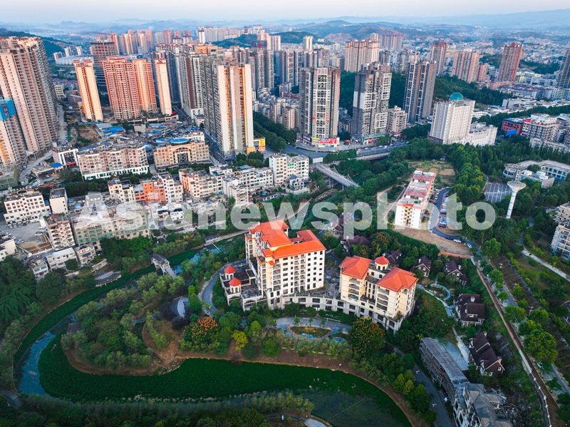 图片说明:2024年9月5日,贵州省黔西市莲城,一栋栋楼房拔地而起,与蜿蜒河道、城内绿荫交相辉映,绘就一幅新时代市城画卷。