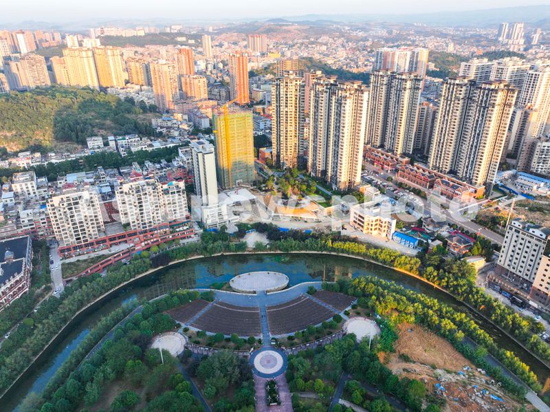 图片说明:2024年9月5日,贵州省黔西市莲城,一栋栋楼房拔地而起,与蜿蜒河道、城内绿荫交相辉映,绘就一幅新时代市城画卷。