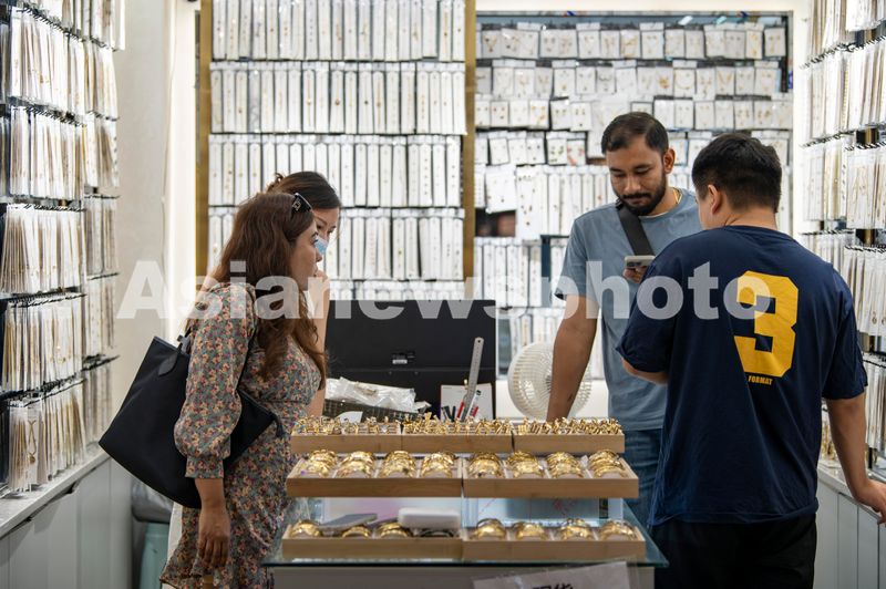 图片说明:2024年9月9日,浙江金华义乌国际商贸城里,外国客商在选购商品。