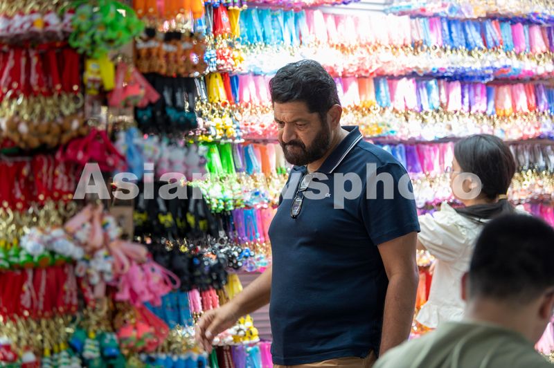 图片说明:2024年9月9日,浙江金华义乌国际商贸城里,外国客商在选购商品。