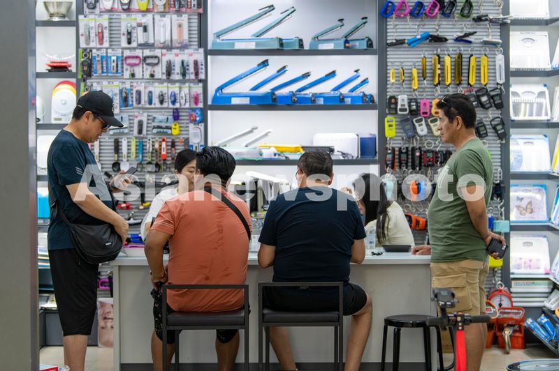 图片说明:2024年9月9日,浙江金华义乌国际商贸城里,外国客商在选购商品。