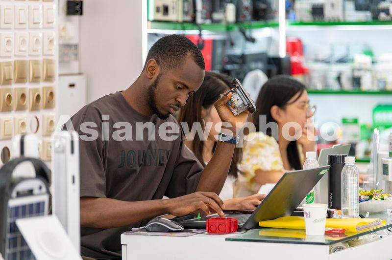 图片说明:2024年9月9日,浙江金华义乌国际商贸城里,非洲客商在选购商品。