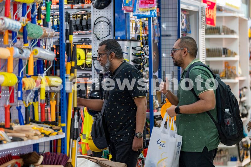 图片说明:2024年9月9日,浙江金华义乌国际商贸城里,外国客商在选购商品。