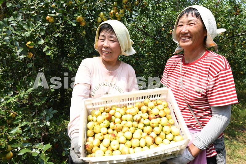 2024年8月30日,农户在安徽省阜阳市颍泉区枣树行种植专业合作社“玉铃铛”枣基地采摘成熟的“玉铃铛”枣。