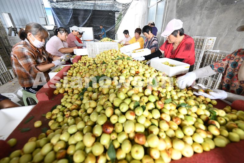 2024年8月30日,在安徽省阜阳市颍泉区枣树行种植专业合作社“玉铃铛”枣基地,农户忙碌着分拣采摘的“玉铃铛”枣,准备对外销售。