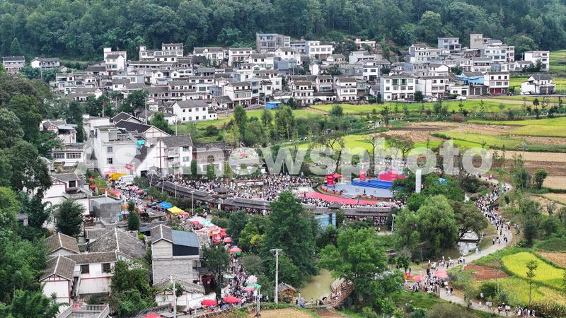 图片说明:9月10日,人们在贵州省黔西南布依族苗族自治州兴仁市屯脚镇鲤鱼村欢度苗族“八月八”风情节。