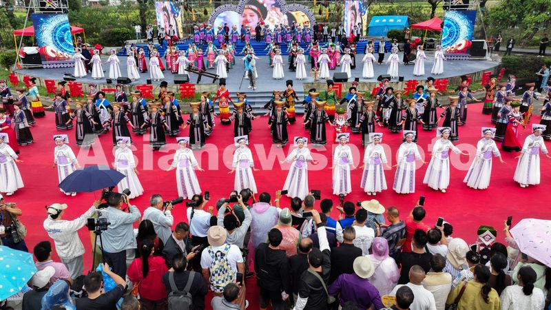 图片说明:9月10日,少数民族同胞在贵州省黔西南布依族苗族自治州兴仁市屯脚镇鲤鱼村载歌载舞欢度苗族“八月八”风情节。