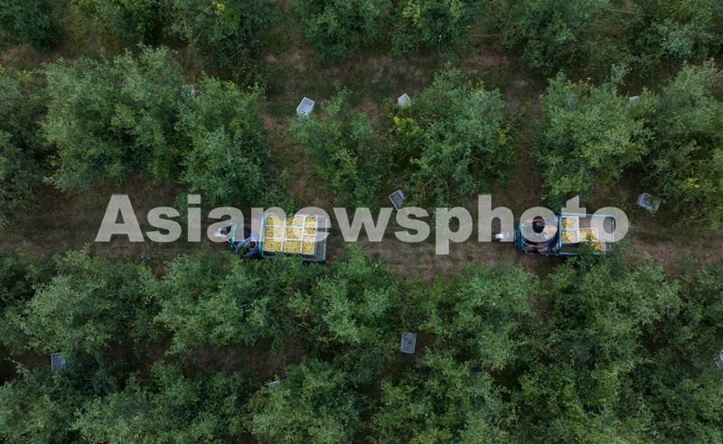 2024年8月30日,在安徽省阜阳市颍泉区枣树行种植专业合作社“玉铃铛”枣基地,农户利用电动三轮车将采收的“玉铃铛”枣外运。
