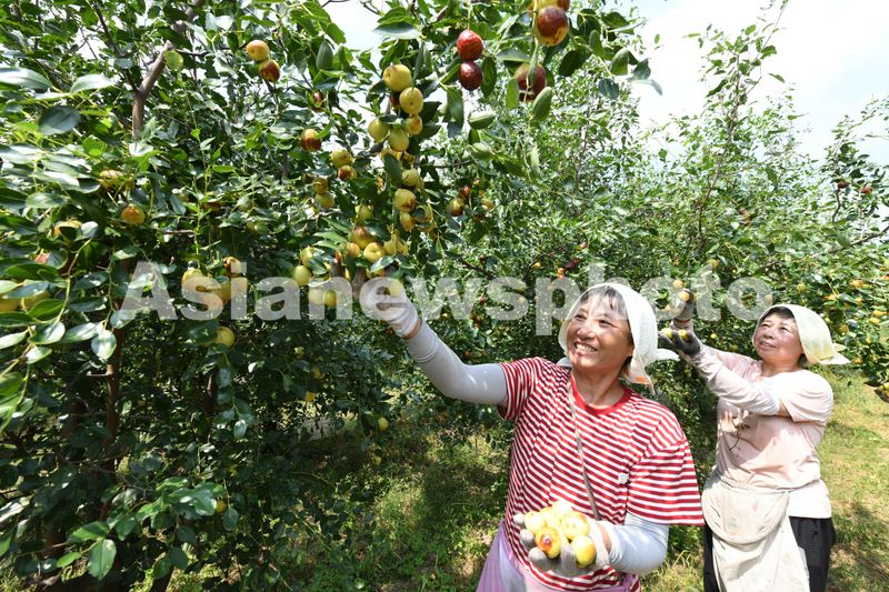 2024年8月30日,农户在安徽省阜阳市颍泉区枣树行种植专业合作社“玉铃铛”枣基地采摘成熟的“玉铃铛”枣。