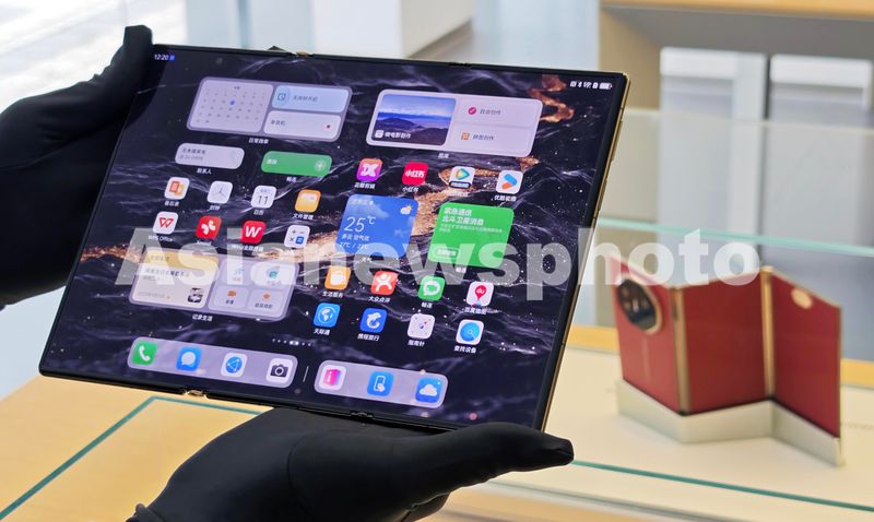 华为正式发布全球首款三折叠屏手机 查看组图