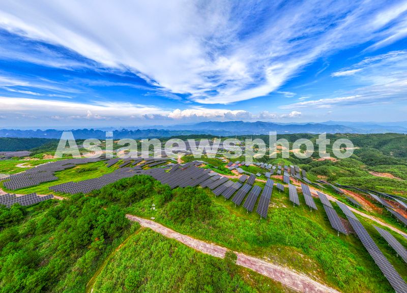 图片说明:2024年9月11日,广西梧州市蒙山县新圩镇山顶上的“茶光互补”光伏发电站。