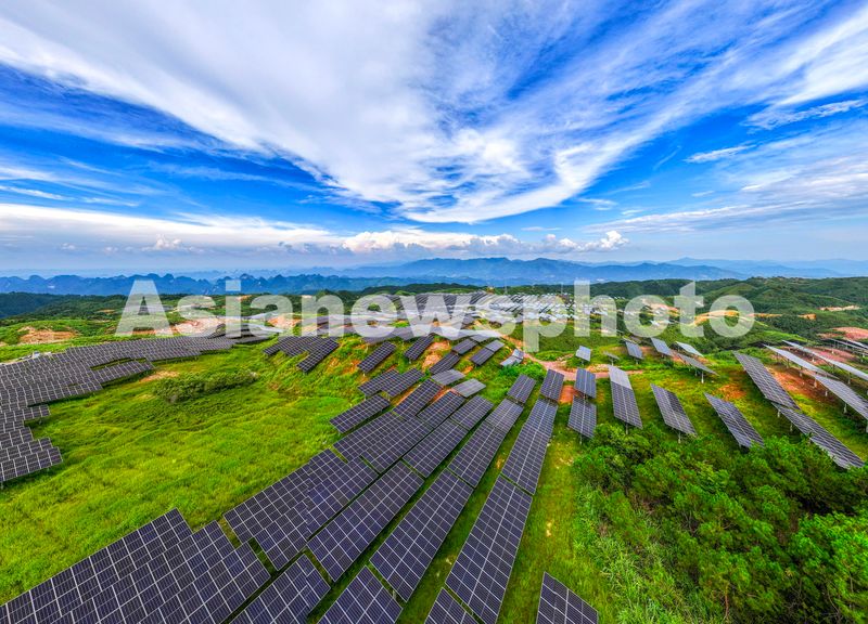 图片说明:2024年9月11日,广西梧州市蒙山县新圩镇山顶上的“茶光互补”光伏发电站。