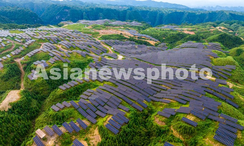2024年9月11日,广西梧州市蒙山县新圩镇山顶上的“茶光互补”光伏发电站。
