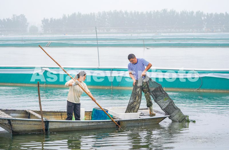 2024年9月13日,江苏省宿迁市宿城区中扬镇“霸王蟹”产业园的蟹农正在捕捞螃蟹。