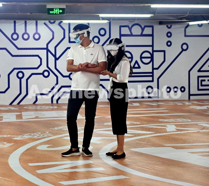 图片说明:市民戴着VR眼镜头显设备跨越时空,沉浸式探索古蜀文明遗迹,体验古蜀文化魅力。