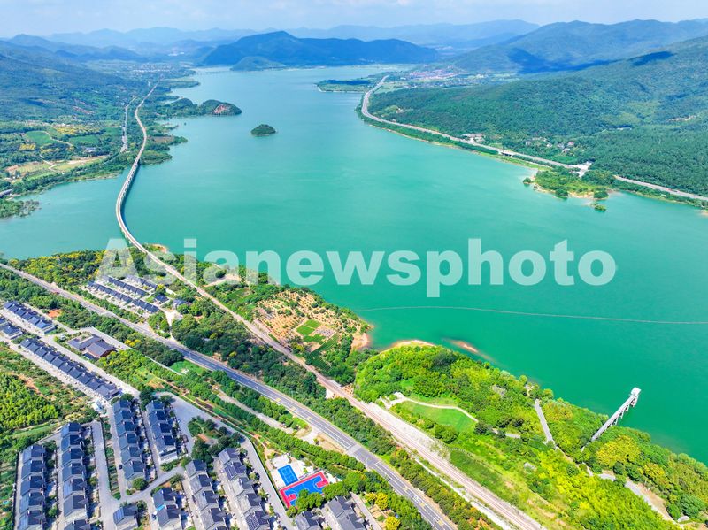 2024年9月15日,浙江省湖州市长兴县小浦镇合溪水库与村庄、青山、道路相映成趣,构成一幅风光旖旎、生态秀美的壮丽画卷。长兴县小浦镇合溪水库是一座集供水、灌溉、生态等综合利用为一体的水利民生工程,自建成以来保障生活用水,减少洪涝灾害,妆点了秀美的生态画卷。