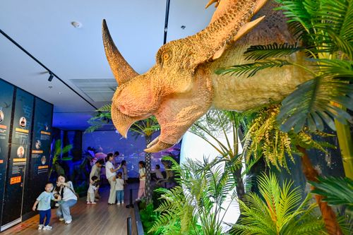 2024年中秋小长假期间,山东省青州市举办了一场集知识性、趣味性、观赏性为一体的大型仿真恐龙互动展,通过逼真的恐龙展品和特色主题活动,为游客打造一场科普盛宴,吸引了许多市民及游客前来观赏。