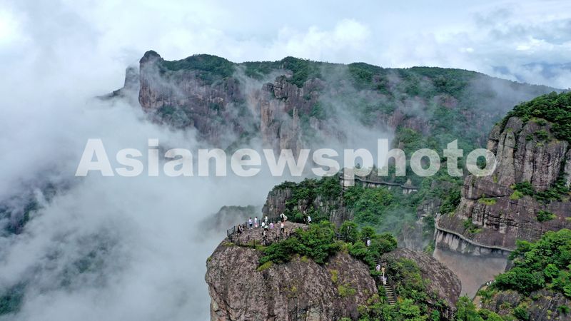 图片说明:2024年9月17日,众多游客在浙江省台州市仙居县神仙居景区游玩。